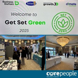 Two of Corepeople Recruitment’s senior managers attended the Get Set Green exhibition yesterday, hosted by Business Durham. The event showcased over 40 innovative businesses, all united in their efforts to drive sustainability and achieve Net Zero targets.